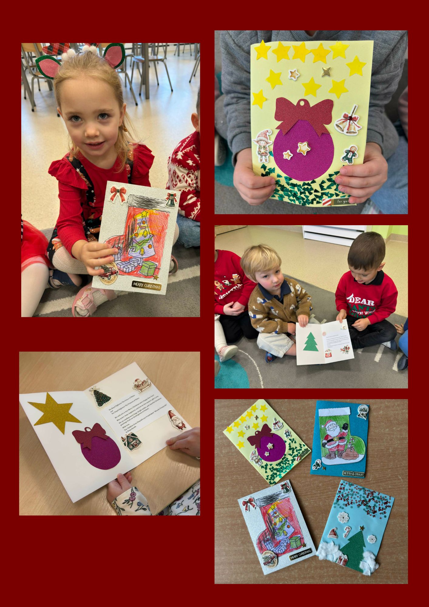 Podczas zajęć z języka angielskiego w naszym przedszkolu, prowadzonych w ramach projektu "Angielski jest fun- tastyczny !" przez panią Kamilę Bator dzieci z zaangażowaniem, wspólnie przygotowały własnoręcznie robione kartki świąteczne z okazji Świąt Bożego Narodzenia. W grudniu przesyłki ruszyły w drogę do Brytyjskiej Rodziny Królewskiej, a przedszkolaki z nadzieją oczekiwały na odpowiedź...