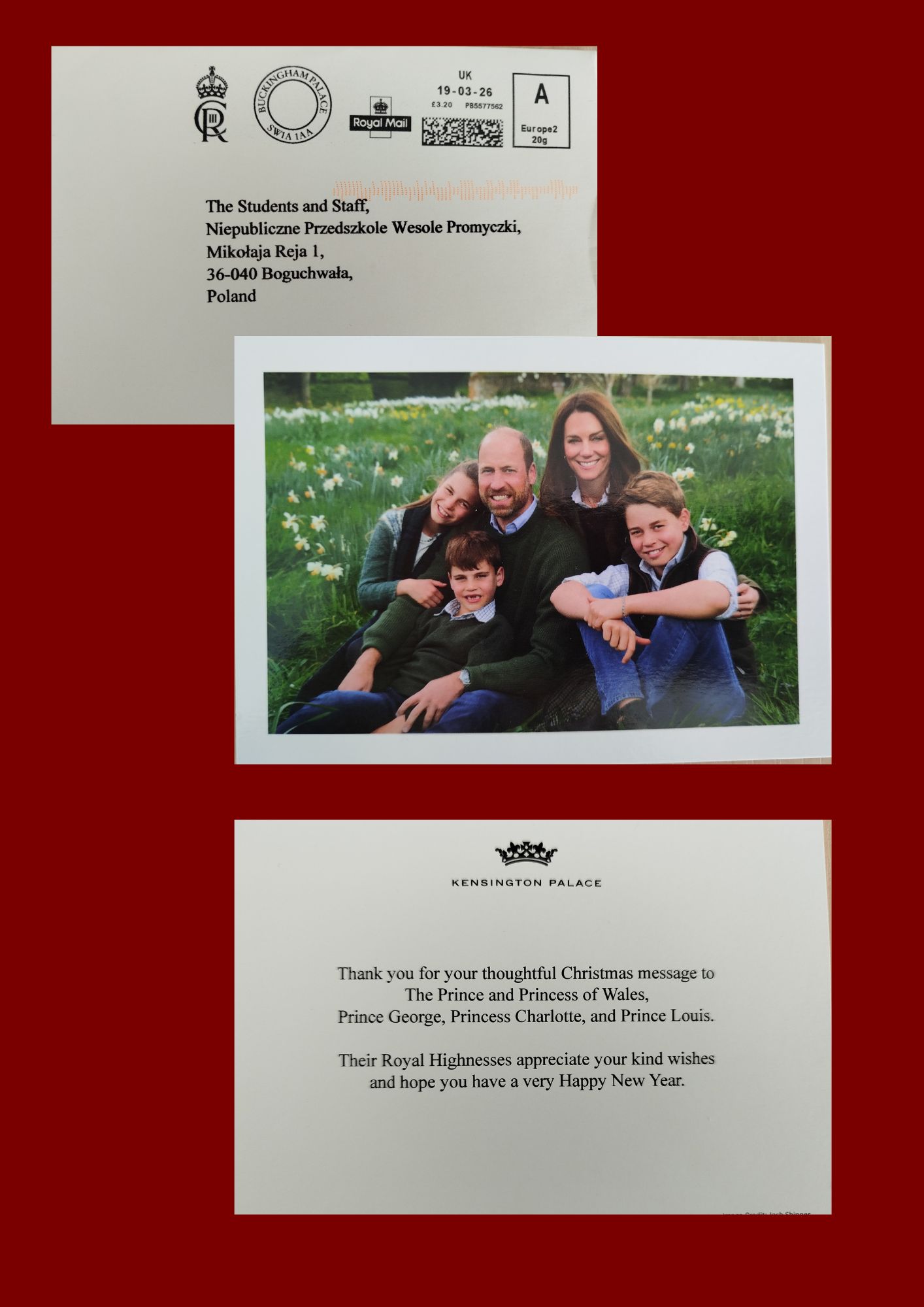 W tym tygodniu spotkała nas wyjątkowa niespodzianka - otrzymaliśmy korespondencję od Księcia Williama oraz Księżnej Kate. Para książęca wyraziła swoją wdzięczność za przesłane życzenia świąteczne, przekazując jednocześnie najlepsze życzenia na nadchodzący Nowy Rok 2026.